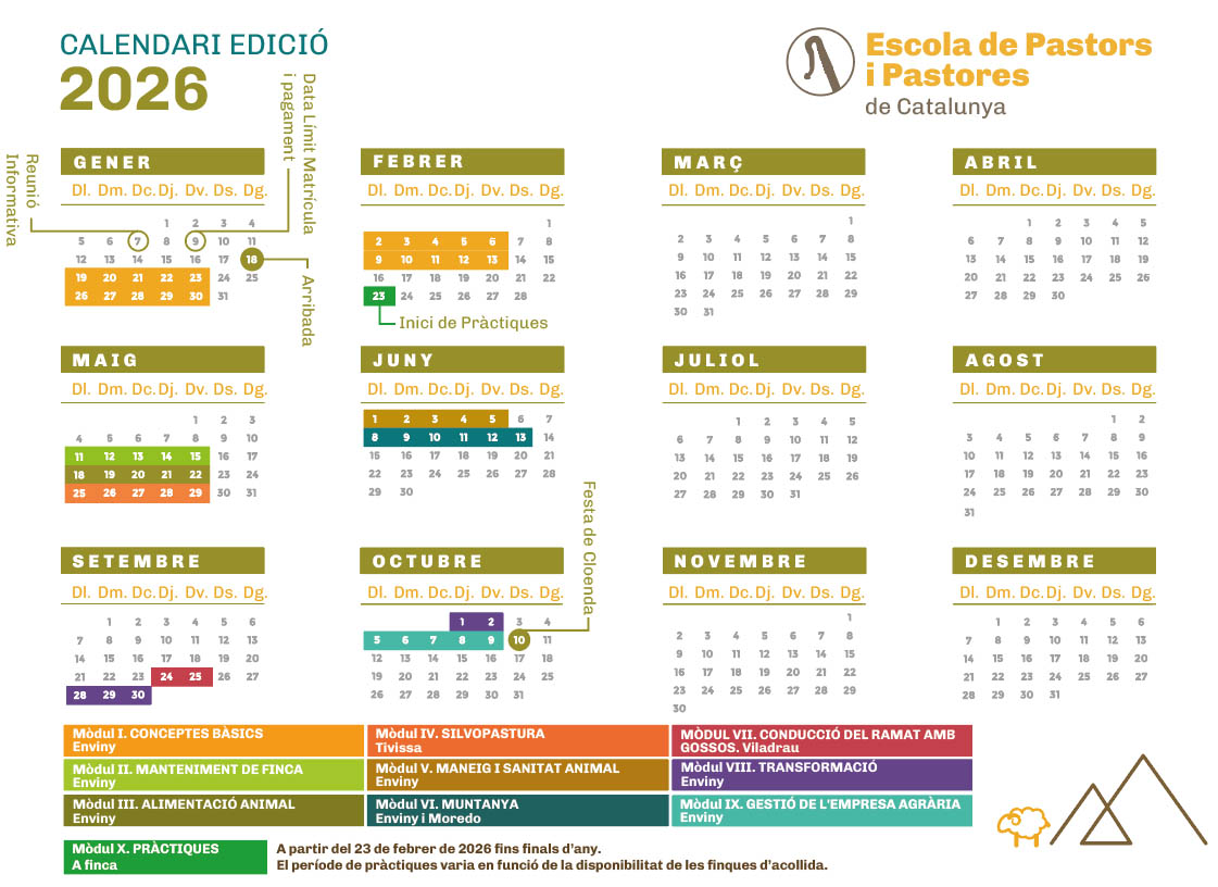 L’Escola de Pastors i Pastores és una formació de 6 mesos i mig de durada, eminentment pràctica (11 setmanes de teoria i 4 mesos de pràctiques) per capacitar una generació que, aliena a la pagesia, senten una veritable vocació per a dedicar-se al sector primari.